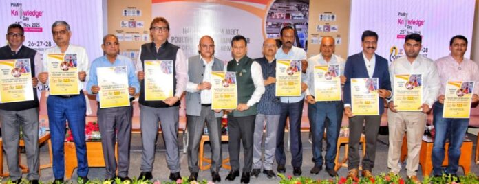 कार्यक्रम में देशभर के मीडिया प्रतिनिधियों ने भाग लिया। विशेष अतिथियों में डॉ. तरुण श्रीधर (पूर्व सचिव, पशुपालन मंत्रालय, भारत सरकार), डॉ. पी.के. शुक्ला (अध्यक्ष, IPSA), श्री रमेश खत्री (अध्यक्ष, PFI), श्री दिव्या कुमार गुलाटी (अध्यक्ष, CLFMA) और श्री नवीन पसुपार्थी (अध्यक्ष, KPFBA) सहित कई उद्योग विशेषज्ञ उपस्थित रहे। कार्यक्रम के दौरान आगामी 17वां पोल्ट्री इंडिया एक्सपो-2025, जो 25 से 28 नवंबर तक हैदराबाद के HITEX एग्ज़िबिशन सेंटर में आयोजित होगा, की रूपरेखा प्रस्तुत की गई। साथ ही 25 नवंबर को होने वाले ‘नॉलेज डे’ का भी ऐलान किया गया, जिसमें देश-विदेश के विशेषज्ञ पोल्ट्री उद्योग की नई चुनौतियों और अवसरों पर चर्चा करेंगे।