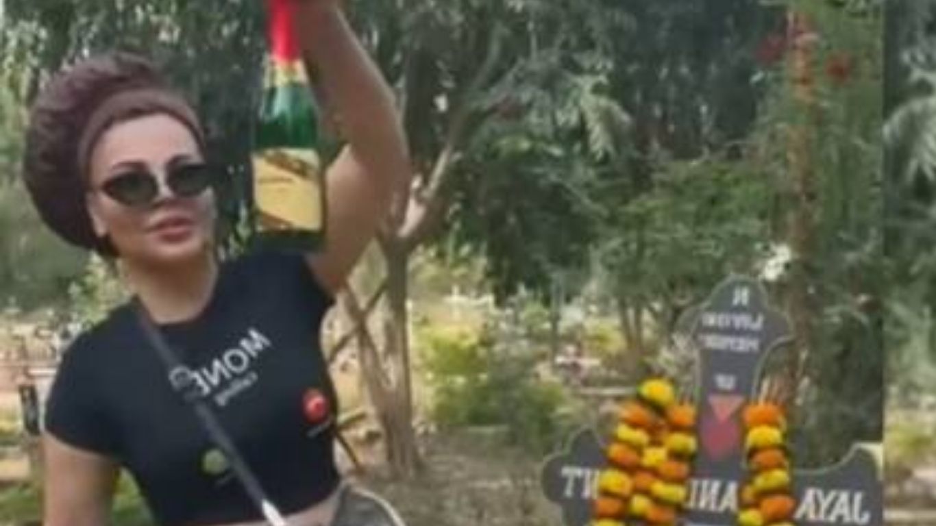 वीडियो वायरल, राखी पहुंचीं कब्र पर शैंपेन लेकर