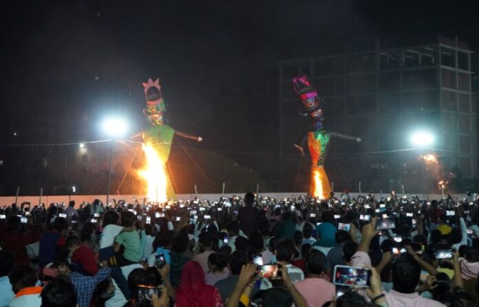 नोएडा। सेक्टर-110 स्थित रामलीला परिसर में ब्रह्मलीन परम पूज्य महर्षि महेश योगी के दैवीय आशीर्वाद से शारदीय नवरात्रि की दशमी तिथि, यानी विजयादशमी के पावन अवसर पर मां अम्बे-जगदम्बे की विधि-विधान से पूजा संपन्न हुई। इस अवसर पर आयोजित भव्य रामलीला मंचन और रावण दहन ने लाखों राम भक्तों को आनंदित कर दिया।